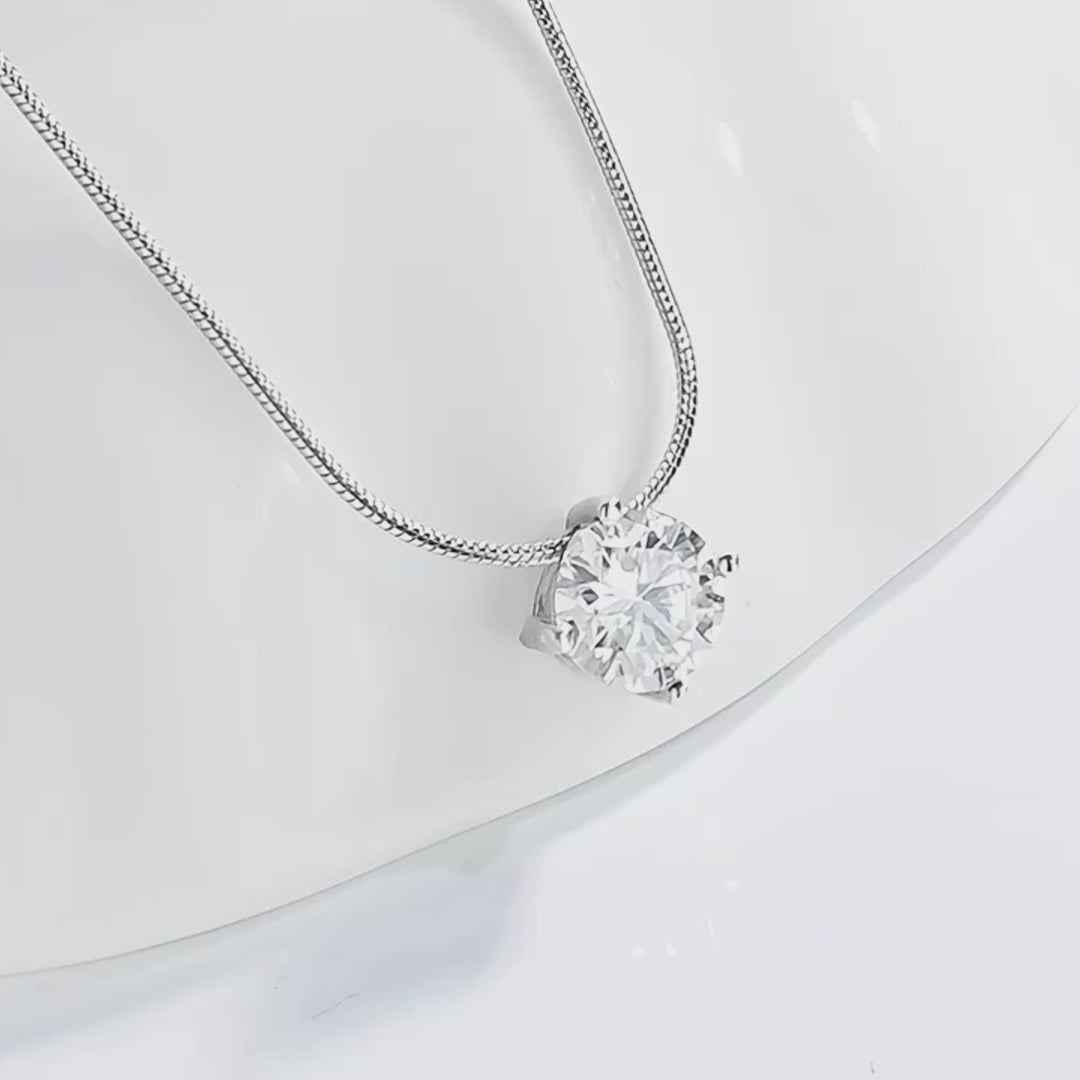 Embrace elegance with this exquisite pendant necklace, crafted from 925 Sterling Silver and featuring a brilliant round-cut VVS Moissanite that sparkles with every glance. Whether for a special celebration or as a radiant daily reminder of your own beauty, this piece is designed to capture hearts and moments alike.